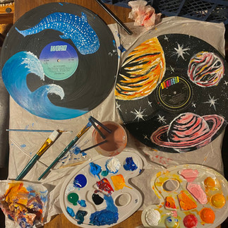 Vinyl Painting allows you to express your own personal art style onto a different canvas. Explore your aesthetic interests in the session or take inspiration from Jasmine's selection of painted vinyls, painting with acrylics onto the records, hand selected and primed in advance by Jasmine.
